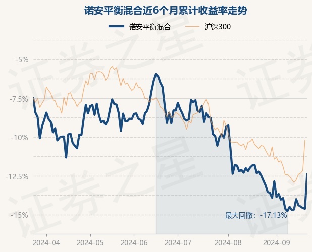 证券之星消息,9月24日,诺安平衡混合最新单位净值为0.9716元,累计净值为3.2316元,较前一交易日上涨5.19%。历史数据显示该基金近1个月上涨0.88%,近3个月下跌8.93%,近6个月下跌9.79%,近1年下跌13.24%。该基金近6个月的累计收益率走势如下图: