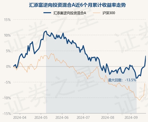 证券之星消息,9月24日,汇添富逆向投资混合A最新单位净值为2.922元,累计净值为3.491元,较前一交易日上涨3.03%。历史数据显示该基金近1个月上涨4.62%,近3个月下跌2.66%,近6个月上涨3.21%,近1年下跌0.88%。该基金近6个月的累计收益率走势如下图: