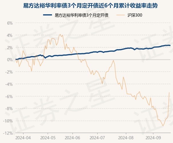 证券之星消息,9月24日,易方达裕华利率债3个月定开债最新单位净值为1.0176元,累计净值为1.0943元,较前一交易日下跌0.04%。历史数据显示该基金近1个月上涨0.46%,近3个月上涨1.18%,近6个月上涨2.26%,近1年上涨4.42%。该基金近6个月的累计收益率走势如下图: