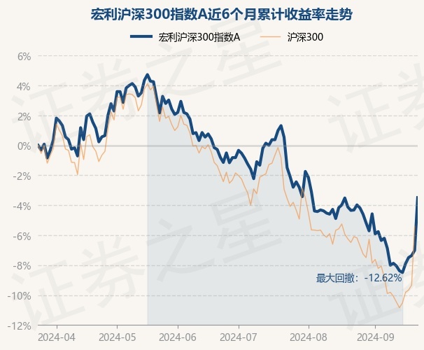 证券之星消息,9月24日,宏利沪深300指数A最新单位净值为1.5469元,累计净值为2.1392元,较前一交易日上涨3.79%。历史数据显示该基金近1个月上涨0.51%,近3个月下跌2.74%,近6个月下跌3.52%,近1年下跌8.06%。该基金近6个月的累计收益率走势如下图: