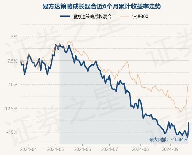 证券之星消息,9月24日,易方达策略成长混合最新单位净值为2.784元,累计净值为4.727元,较前一交易日上涨3.57%。历史数据显示该基金近1个月上涨1.46%,近3个月下跌10.25%,近6个月下跌13.08%,近1年下跌19.21%。该基金近6个月的累计收益率走势如下图: