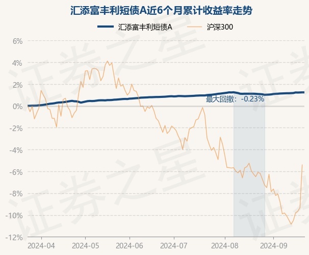 证券之星消息,9月24日,汇添富丰利短债A最新单位净值为1.1441元,累计净值为1.1441元,较前一交易日上涨0.0%。历史数据显示该基金近1个月上涨0.16%,近3个月上涨0.41%,近6个月上涨1.24%,近1年上涨2.84%。该基金近6个月的累计收益率走势如下图: