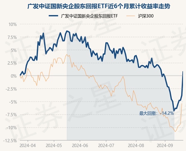 证券之星消息,9月24日,广发中证国新央企股东回报ETF最新单位净值为0.9727元,累计净值为0.9917元,较前一交易日上涨4.73%。历史数据显示该基金近1个月下跌1.36%,近3个月下跌2.29%,近6个月上涨0.72%,近1年下跌0.4%。该基金近6个月的累计收益率走势如下图:
