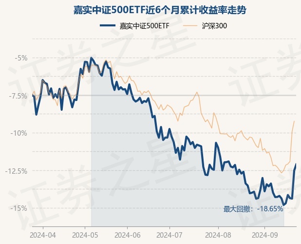 证券之星消息,9月25日,嘉实中证500ETF最新单位净值为4.9892元,累计净值为1.5631元,较前一交易日上涨0.91%。历史数据显示该基金近1个月上涨4.33%,近3个月下跌3.76%,近6个月下跌9.23%,近1年下跌15.3%。该基金近6个月的累计收益率走势如下图: