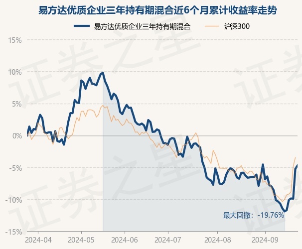 证券之星消息,9月25日,易方达优质企业三年持有期混合最新单位净值为0.7943元,累计净值为0.7943元,较前一交易日上涨0.52%。历史数据显示该基金近1个月上涨1.87%,近3个月下跌5.62%,近6个月下跌4.74%,近1年下跌18.22%。该基金近6个月的累计收益率走势如下图: