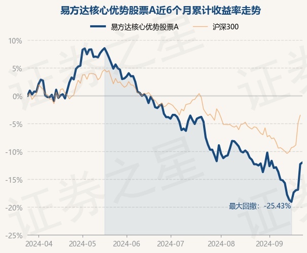 证券之星消息,9月25日,易方达核心优势股票A最新单位净值为0.6269元,累计净值为0.6269元,较前一交易日上涨0.32%。历史数据显示该基金近1个月上涨0.35%,近3个月下跌10.4%,近6个月下跌11.99%,近1年下跌14.79%。该基金近6个月的累计收益率走势如下图: