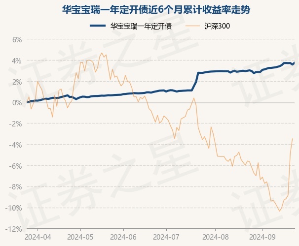 证券之星消息,9月25日,华宝宝瑞一年定开债最新单位净值为1.0883元,累计净值为1.1233元,较前一交易日上涨0.16%。历史数据显示该基金近1个月上涨0.69%,近3个月上涨2.7%,近6个月上涨3.74%,近1年上涨5.45%。该基金近6个月的累计收益率走势如下图: