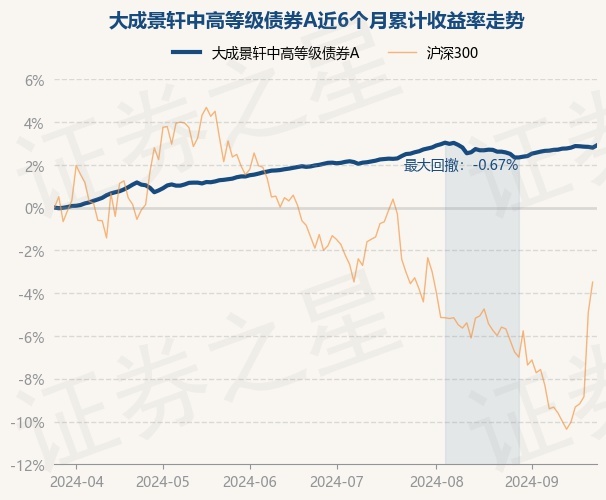 证券之星消息,9月25日,大成景轩中高等级债券A最新单位净值为1.1015元,累计净值为1.1465元,较前一交易日上涨0.11%。历史数据显示该基金近1个月上涨0.33%,近3个月上涨0.93%,近6个月上涨2.92%,近1年上涨5.4%。该基金近6个月的累计收益率走势如下图: