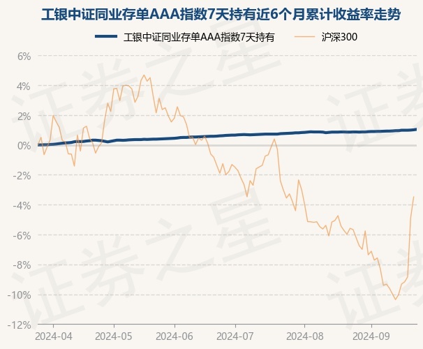 证券之星消息,9月25日,工银中证同业存单AAA指数7天持有最新单位净值为1.0475元,累计净值为1.0475元,较前一交易日上涨0.03%。历史数据显示该基金近1个月上涨0.17%,近3个月上涨0.43%,近6个月上涨1.04%,近1年上涨2.24%。该基金近6个月的累计收益率走势如下图: