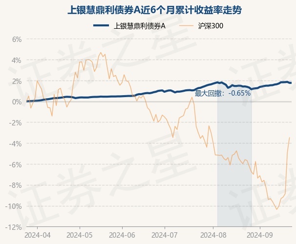 证券之星消息,9月25日,上银慧鼎利债券A最新单位净值为1.0154元,累计净值为1.0891元,较前一交易日上涨0.0%。历史数据显示该基金近1个月上涨0.5%,近3个月上涨1.01%,近6个月上涨1.9%,近1年上涨3.28%。该基金近6个月的累计收益率走势如下图: