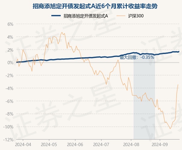 证券之星消息,9月25日,招商添旭定开债发起式A最新单位净值为1.0314元,累计净值为1.179元,较前一交易日上涨0.09%。历史数据显示该基金近1个月上涨0.4%,近3个月上涨0.91%,近6个月上涨1.69%,近1年上涨2.87%。该基金近6个月的累计收益率走势如下图: