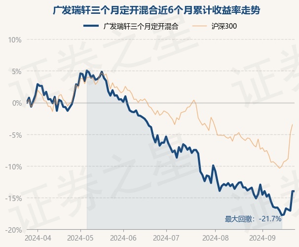 证券之星消息,9月25日,广发瑞轩三个月定开混合最新单位净值为0.5065元,累计净值为0.5065元,较前一交易日上涨0.0%。历史数据显示该基金近1个月上涨0.12%,近3个月下跌7.72%,近6个月下跌13.52%,近1年下跌23.47%。该基金近6个月的累计收益率走势如下图: