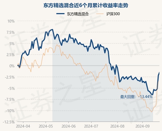 证券之星消息,9月25日,东方精选混合最新单位净值为1.5563元,累计净值为4.8189元,较前一交易日上涨0.64%。历史数据显示该基金近1个月上涨1.08%,近3个月下跌5.58%,近6个月下跌1.56%,近1年下跌2.37%。该基金近6个月的累计收益率走势如下图: