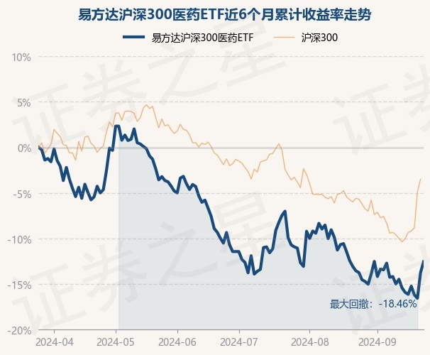 证券之星消息,9月25日,易方达沪深300医药ETF最新单位净值为0.3222元,累计净值为1.2888元,较前一交易日上涨1.42%。历史数据显示该基金近1个月上涨1.38%,近3个月下跌2.27%,近6个月下跌12.54%,近1年下跌24.19%。该基金近6个月的累计收益率走势如下图:
