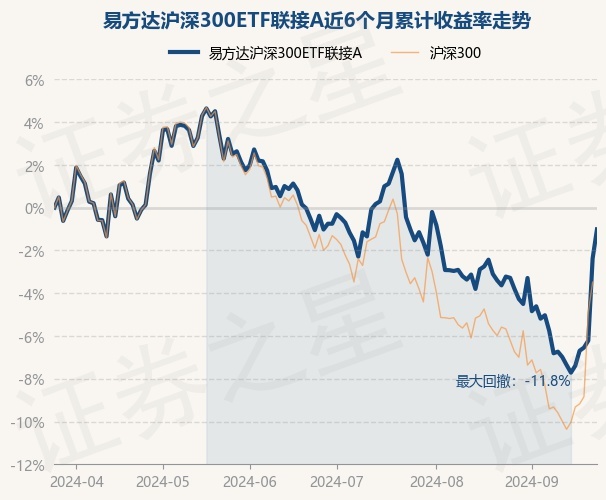 证券之星消息,9月25日,易方达沪深300ETF联接A最新单位净值为1.3535元,累计净值为1.3535元,较前一交易日上涨1.39%。历史数据显示该基金近1个月上涨2.28%,近3个月上涨0.04%,近6个月下跌1.02%,近1年下跌5.63%。该基金近6个月的累计收益率走势如下图:
