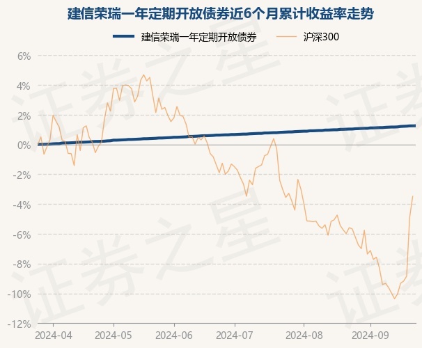证券之星消息,9月25日,建信荣瑞一年定期开放债券最新单位净值为1.0444元,累计净值为1.0744元,较前一交易日上涨0.01%。历史数据显示该基金近1个月上涨0.22%,近3个月上涨0.63%,近6个月上涨1.26%,近1年上涨2.89%。该基金近6个月的累计收益率走势如下图: