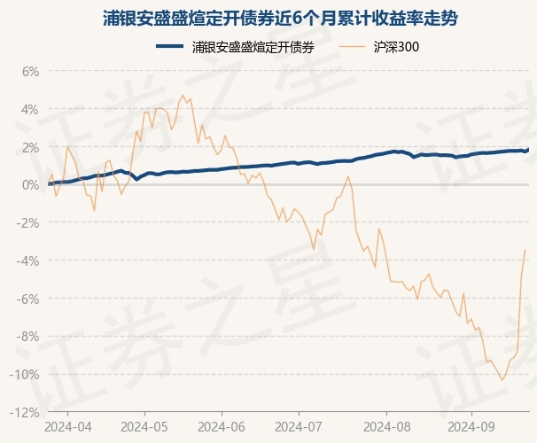 证券之星消息,9月25日,浦银安盛盛煊定开债券最新单位净值为1.0383元,累计净值为1.144元,较前一交易日上涨0.11%。历史数据显示该基金近1个月上涨0.3%,近3个月上涨0.78%,近6个月上涨1.81%,近1年上涨3.46%。该基金近6个月的累计收益率走势如下图:
