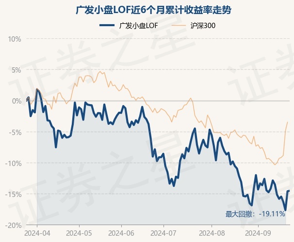 证券之星消息,9月25日,广发小盘LOF最新单位净值为1.0808元,累计净值为4.4519元,较前一交易日上涨0.08%。历史数据显示该基金近1个月上涨1.08%,近3个月下跌6.06%,近6个月下跌14.54%,近1年下跌21.21%。该基金近6个月的累计收益率走势如下图: