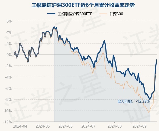 证券之星消息,9月25日,工银瑞信沪深300ETF最新单位净值为3.571元,累计净值为0.9864元,较前一交易日上涨1.48%。历史数据显示该基金近1个月上涨6.58%,近3个月上涨4.11%,近6个月上涨3.08%,近1年下跌1.92%。该基金近6个月的累计收益率走势如下图: