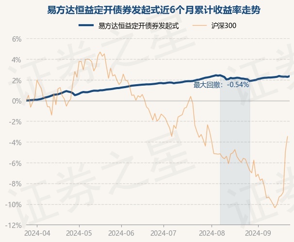 证券之星消息,9月25日,易方达恒益定开债券发起式最新单位净值为1.0379元,累计净值为1.2919元,较前一交易日上涨0.08%。历史数据显示该基金近1个月上涨0.28%,近3个月上涨0.76%,近6个月上涨2.36%,近1年上涨4.8%。该基金近6个月的累计收益率走势如下图: