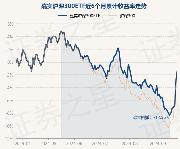 证券之星消息,9月25日,嘉实沪深300ETF最新单位净值为3.561元,累计净值为1.6252元,较前一交易日上涨1.49%。历史数据显示该基金近1个月上涨2.37%,近3个月下跌0.07%,近6个月下跌1.32%,近1年下跌6.37%。该基金近6个月的累计收益率走势如下图: