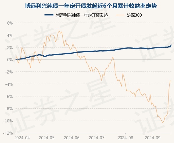 证券之星消息,9月25日,博远利兴纯债一年定开债发起最新单位净值为1.0245元,累计净值为1.0716元,较前一交易日上涨0.26%。历史数据显示该基金近1个月上涨0.53%,近3个月上涨1.04%,近6个月上涨2.34%,近1年上涨4.55%。该基金近6个月的累计收益率走势如下图: