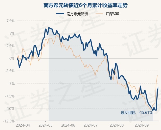证券之星消息,9月25日,南方希元转债最新单位净值为1.2534元,累计净值为1.2534元,较前一交易日上涨0.74%。历史数据显示该基金近1个月上涨2.19%,近3个月下跌7.5%,近6个月下跌5.82%,近1年下跌13.61%。该基金近6个月的累计收益率走势如下图: