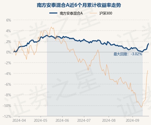 证券之星消息,9月25日,南方安泰混合A最新单位净值为1.1231元,累计净值为1.4589元,较前一交易日上涨0.29%。历史数据显示该基金近1个月上涨0.75%,近3个月下跌0.5%,近6个月上涨1.57%,近1年上涨1.61%。该基金近6个月的累计收益率走势如下图: