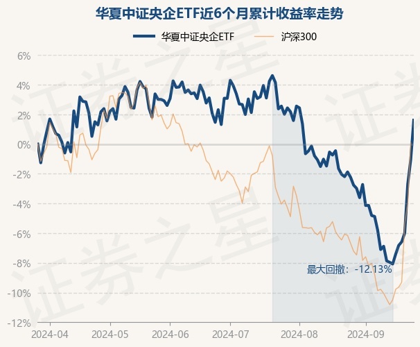 证券之星消息,9月26日,华夏中证央企ETF最新单位净值为1.2502元,累计净值为1.2502元,较前一交易日上涨2.68%。历史数据显示该基金近1个月上涨3.93%,近3个月下跌0.69%,近6个月上涨1.61%,近1年上涨1.52%。该基金近6个月的累计收益率走势如下图: