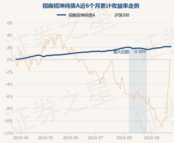 证券之星消息,9月26日,招商招坤纯债A最新单位净值为1.341元,累计净值为1.3593元,较前一交易日下跌0.06%。历史数据显示该基金近1个月上涨0.37%,近3个月上涨0.81%,近6个月上涨2.07%,近1年上涨4.51%。该基金近6个月的累计收益率走势如下图: