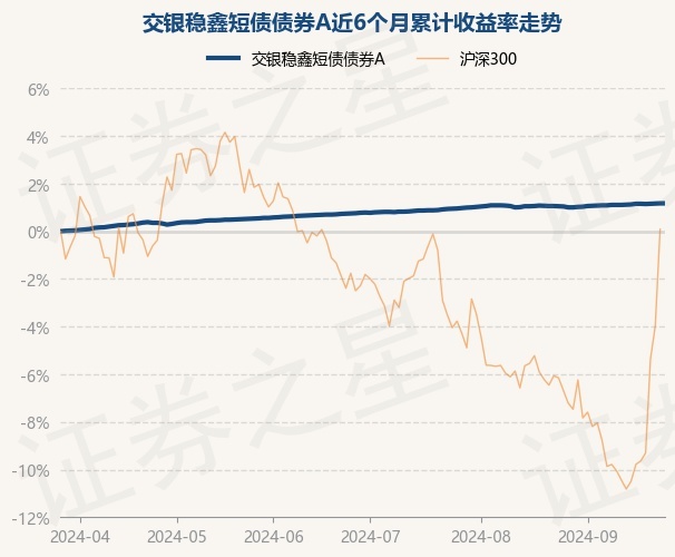 交银稳鑫短债债券A为债券型-中短债基金,根据最新一期基金季报显示,该基金资产配置:无股票类资产,债券占净值比107.38%,现金占净值比0.09%。