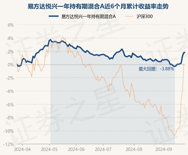 证券之星消息,9月26日,易方达悦兴一年持有期混合A最新单位净值为1.0078元,累计净值为1.0078元,较前一交易日上涨0.0%。历史数据显示该基金近1个月上涨2.59%,近3个月上涨1.72%,近6个月上涨3.16%,近1年上涨0.27%。该基金近6个月的累计收益率走势如下图:
