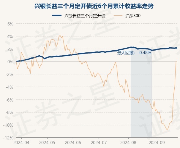 证券之星消息,9月26日,兴银长益三个月定开债最新单位净值为1.0167元,累计净值为1.3226元,较前一交易日下跌0.03%。历史数据显示该基金近1个月上涨0.21%,近3个月上涨0.69%,近6个月上涨2.11%,近1年上涨4.43%。该基金近6个月的累计收益率走势如下图: