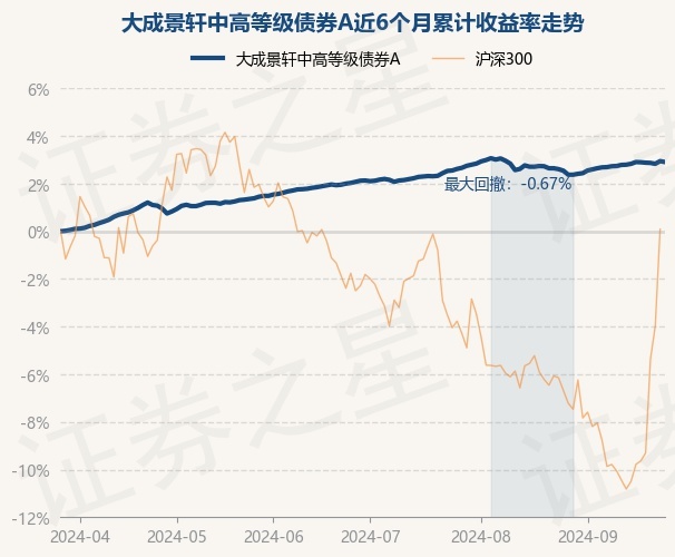 证券之星消息,9月26日,大成景轩中高等级债券A最新单位净值为1.1011元,累计净值为1.1461元,较前一交易日下跌0.04%。历史数据显示该基金近1个月上涨0.36%,近3个月上涨0.86%,近6个月上涨2.91%,近1年上涨5.39%。该基金近6个月的累计收益率走势如下图: