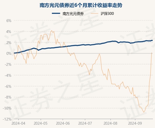 证券之星消息,9月26日,南方光元债券最新单位净值为1.0526元,累计净值为1.0726元,较前一交易日上涨0.0%。历史数据显示该基金近1个月上涨0.34%,近3个月上涨0.8%,近6个月上涨2.29%,近1年上涨4.45%。该基金近6个月的累计收益率走势如下图: