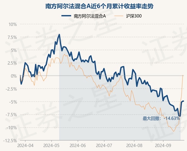 证券之星消息,9月26日,南方阿尔法混合A最新单位净值为0.4487元,累计净值为0.4487元,较前一交易日上涨0.0%。历史数据显示该基金近1个月上涨0.63%,近3个月下跌3.11%,近6个月下跌2.35%,近1年下跌8.13%。该基金近6个月的累计收益率走势如下图:
