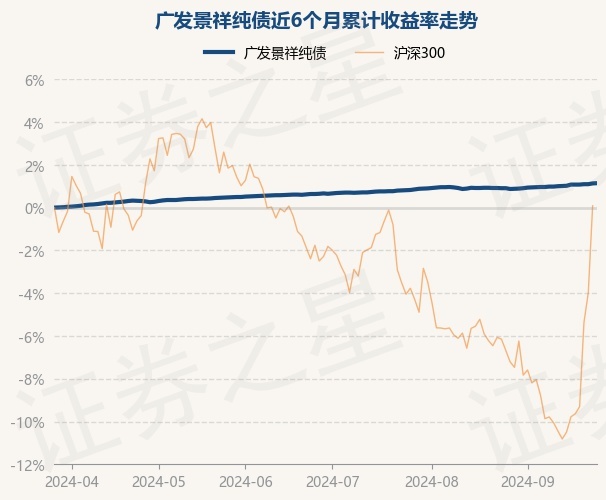 证券之星消息,9月26日,广发景祥纯债最新单位净值为1.0808元,累计净值为1.2461元,较前一交易日上涨0.01%。历史数据显示该基金近1个月上涨0.23%,近3个月上涨0.5%,近6个月上涨1.14%,近1年上涨2.5%。该基金近6个月的累计收益率走势如下图: