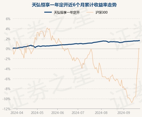 证券之星消息,9月26日,天弘恒享一年定开最新单位净值为1.1327元,累计净值为1.1327元,较前一交易日上涨0.0%。历史数据显示该基金近1个月上涨0.3%,近3个月上涨0.68%,近6个月上涨1.6%,近1年上涨3.66%。该基金近6个月的累计收益率走势如下图: