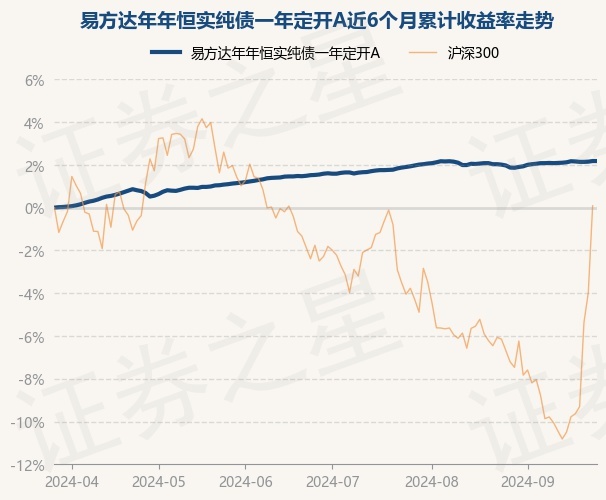 证券之星消息,9月26日,易方达年年恒实纯债一年定开A最新单位净值为1.0346元,累计净值为1.1525元,较前一交易日上涨0.0%。历史数据显示该基金近1个月上涨0.2%,近3个月上涨0.64%,近6个月上涨2.18%,近1年上涨4.7%。该基金近6个月的累计收益率走势如下图: