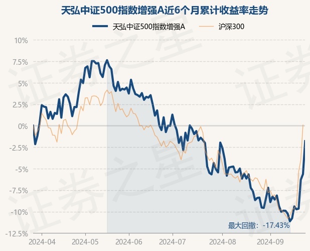 证券之星消息,9月26日,天弘中证500指数增强A最新单位净值为1.0129元,累计净值为1.0129元,较前一交易日上涨4.07%。历史数据显示该基金近1个月上涨7.17%,近3个月下跌2.75%,近6个月下跌1.79%,近1年下跌8.63%。该基金近6个月的累计收益率走势如下图: