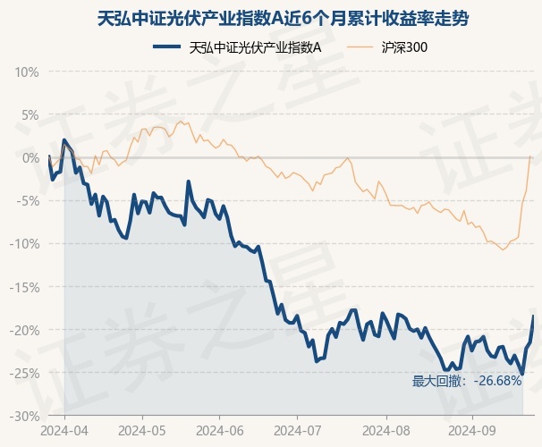 证券之星消息,9月26日,天弘中证光伏产业指数A最新单位净值为0.5888元,累计净值为0.5888元,较前一交易日上涨3.79%。历史数据显示该基金近1个月上涨7.07%,近3个月下跌1.7%,近6个月下跌18.57%,近1年下跌28.08%。该基金近6个月的累计收益率走势如下图: