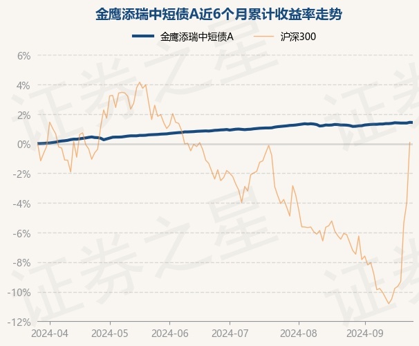 金鹰添瑞中短债A为债券型-中短债基金,根据最新一期基金季报显示,该基金资产配置:无股票类资产,债券占净值比98.79%,现金占净值比0.21%。
