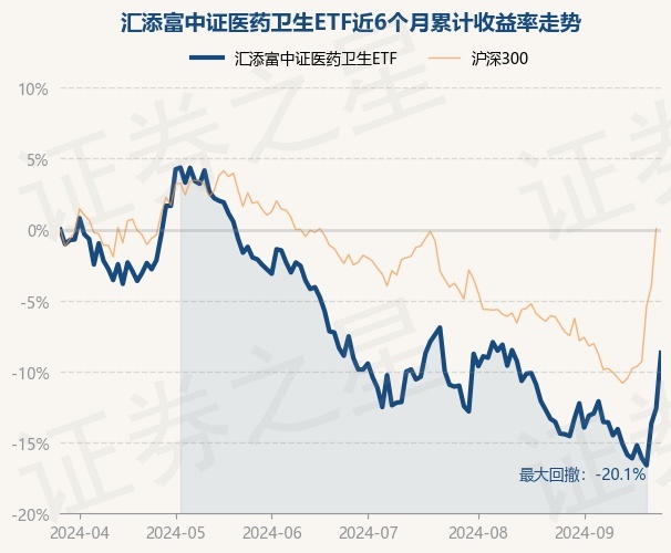 证券之星消息,9月26日,汇添富中证医药卫生ETF最新单位净值为1.1839元,累计净值为1.1839元,较前一交易日上涨4.47%。历史数据显示该基金近1个月上涨6.65%,近3个月下跌1.26%,近6个月下跌8.68%,近1年下跌19.46%。该基金近6个月的累计收益率走势如下图: