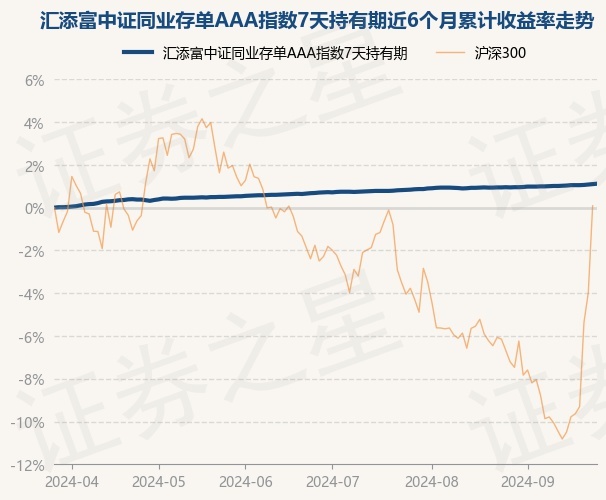 证券之星消息,9月26日,汇添富中证同业存单AAA指数7天持有期最新单位净值为1.0493元,累计净值为1.0493元,较前一交易日上涨0.02%。历史数据显示该基金近1个月上涨0.16%,近3个月上涨0.43%,近6个月上涨1.12%,近1年上涨2.32%。该基金近6个月的累计收益率走势如下图: