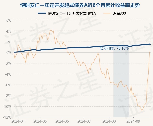 证券之星消息,9月26日,博时安仁一年定开发起式债券A最新单位净值为1.1545元,累计净值为1.3222元,较前一交易日下跌0.03%。历史数据显示该基金近1个月上涨0.3%,近3个月上涨0.6%,近6个月上涨1.5%,近1年上涨8.72%。该基金近6个月的累计收益率走势如下图: