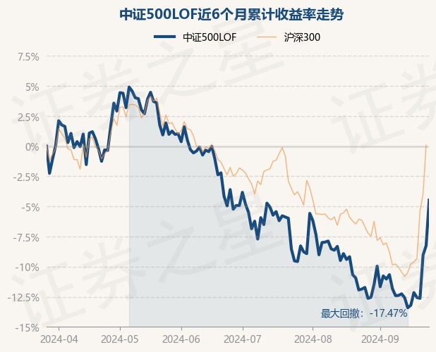 证券之星消息,9月26日,中证500LOF最新单位净值为1.1811元,累计净值为1.1811元,较前一交易日上涨4.12%。历史数据显示该基金近1个月上涨8.21%,近3个月下跌0.91%,近6个月下跌4.48%,近1年下跌10.25%。该基金近6个月的累计收益率走势如下图: