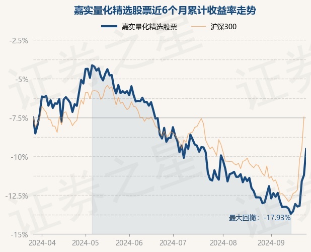 证券之星消息,9月26日,嘉实量化精选股票最新单位净值为1.1943元,累计净值为1.5453元,较前一交易日上涨3.63%。历史数据显示该基金近1个月上涨6.97%,近3个月下跌2.77%,近6个月下跌4.06%,近1年下跌11.09%。该基金近6个月的累计收益率走势如下图: