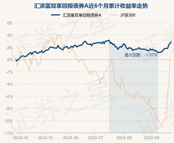 证券之星消息,9月26日,汇添富双享回报债券A最新单位净值为1.0308元,累计净值为1.0308元,较前一交易日上涨0.29%。历史数据显示该基金近1个月上涨1.25%,近3个月上涨0.37%,近6个月上涨2.93%,近1年上涨5.65%。该基金近6个月的累计收益率走势如下图: