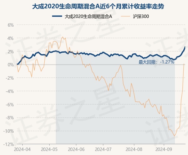 证券之星消息,9月26日,大成2020生命周期混合A最新单位净值为0.9495元,累计净值为2.7715元,较前一交易日上涨0.5%。历史数据显示该基金近1个月上涨1.13%,近3个月上涨1.14%,近6个月上涨2.62%,近1年上涨4.0%。该基金近6个月的累计收益率走势如下图:
