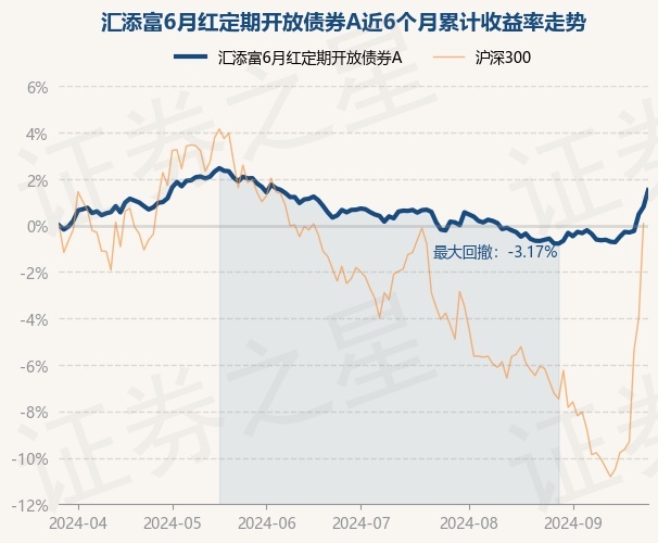 汇添富6月红定期开放债券A为债券型-混合二级基金,根据最新一期基金季报显示,该基金资产配置:股票占净值比14.04%,债券占净值比102.29%,现金占净值比2.04%。基金十大重仓股如下: